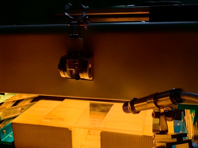 固化PP料無塵裁切可利用聚焦加熱器對半固化PP材料進行加熱,結合圓刀切割技術實現無塵裁切。其主要原理是將紅外加熱技術與傳統(tǒng)的裁切方法相結合,利用紅外聚焦高溫加熱,穿透力強,加熱速度快,對切割處的半固化片先加熱再裁切,從而減少切割過程中產生的粉塵,解決一直以來困擾業(yè)界的裁切半固化片粉塵及毛邊問題,提高生產效率的同時保證了操作人員的健康。